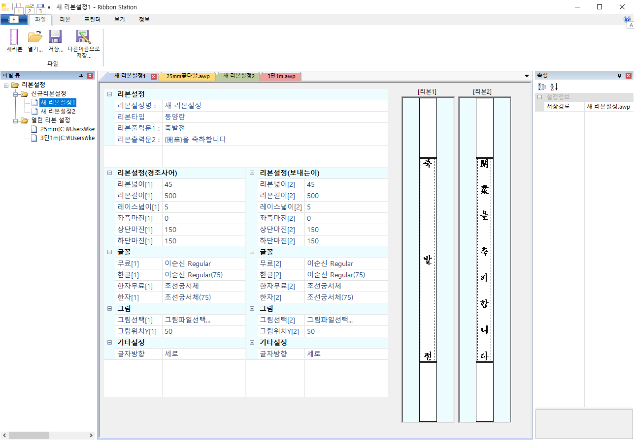 - 동시에 여러가지 리본출력 설정을 편집 및 출력가능