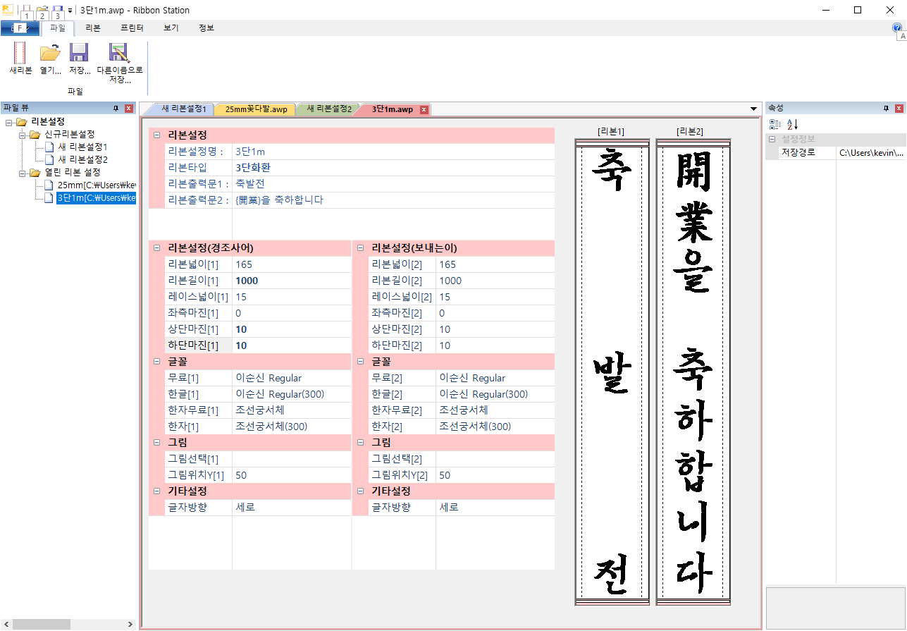 꽃집 리본출력용 프로그램 개발